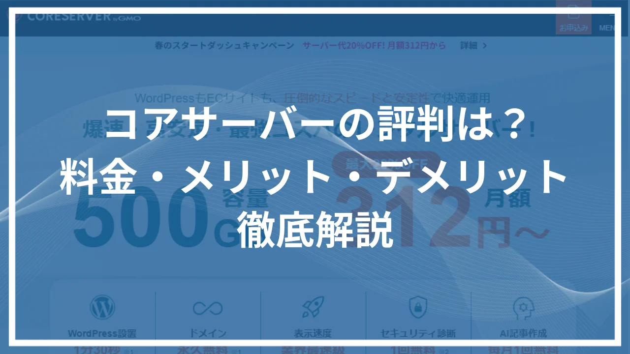 コアサーバーは、GMOインターネットグループ傘下のGMOデジロック株式会社が運営するレンタルサーバーサービスです。「爆速・高安定・最強コスパ」をキャッチコピーに掲げており、個人ブログから法人のコーポレートサイトまでカバーしています。