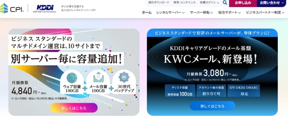 大手グループの安心感を重視CPIレンタルサーバーKDDIグループ・29年運営・法人利用率95%以上の実績