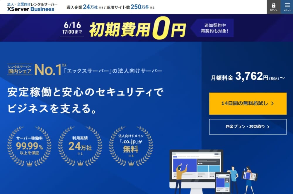 エックスサーバービジネスは、国内シェアNo.1クラスのエックスサーバーが提供する法人・ビジネス特化ブランドです。個人向けとは別ラインで運用されており、SLA・認証・法人契約・改ざん検知まで一通り揃えた法人向けで、会社としての契約手続きがスムーズに進みます。