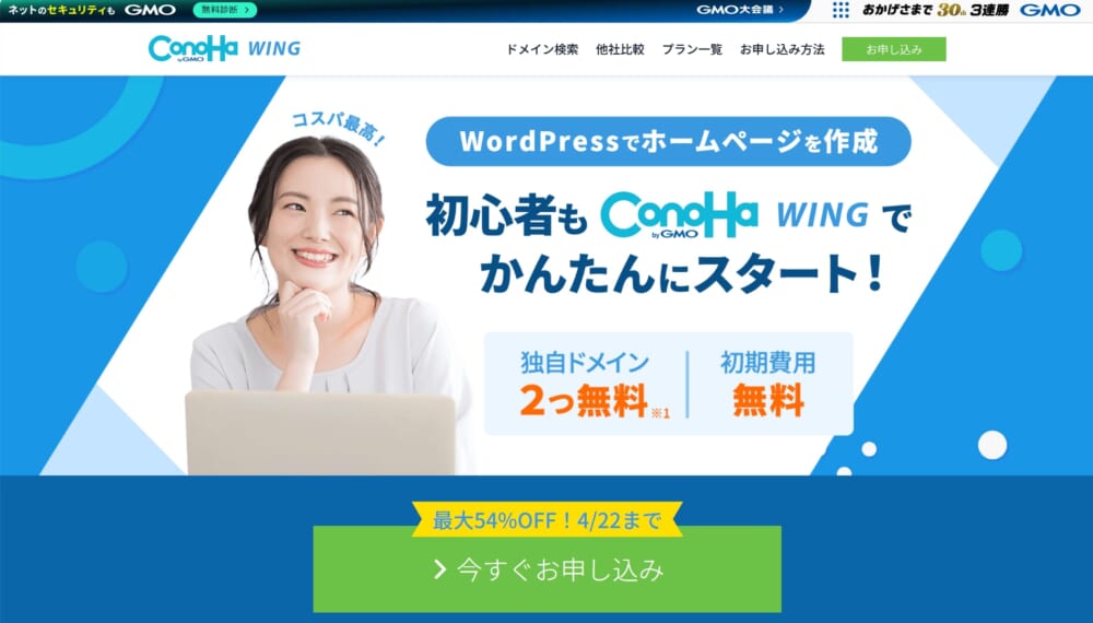 ConoHa WINGはGMOインターネットグループが提供する新興系レンタルサーバー。管理画面の使いやすさと処理速度を売りにしています。