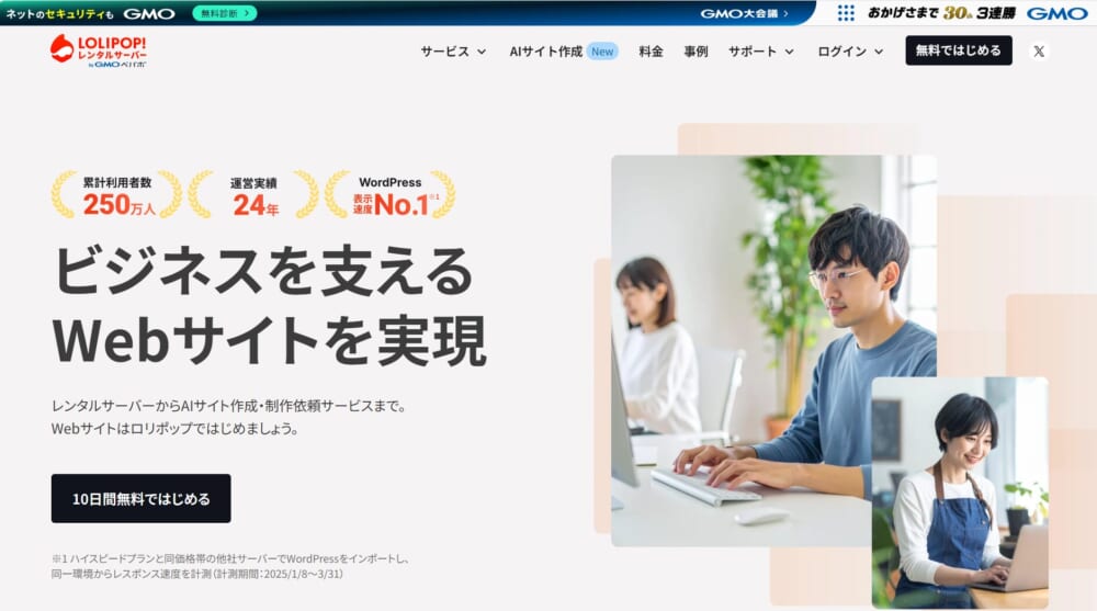 全プラン初期費用0円・転送量無制限・14日間無料お試しという条件に加え、56万件突破の利用実績と99.99%以上の稼働率が長期運用の安心感を支える強みです。管理画面が旧来仕様な点やライトプランのWordPress非対応といった注意点はあるものの、老舗ならではの信頼性とコストバランスは十分に評価できます。